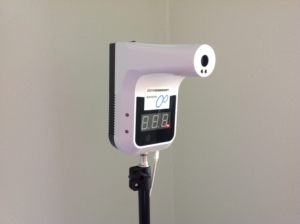 新型コロナウイルス感染防止対策のため非接触での体温測定やタブレット端末への接触回数削減等を行い、感染防止対策を行っています。